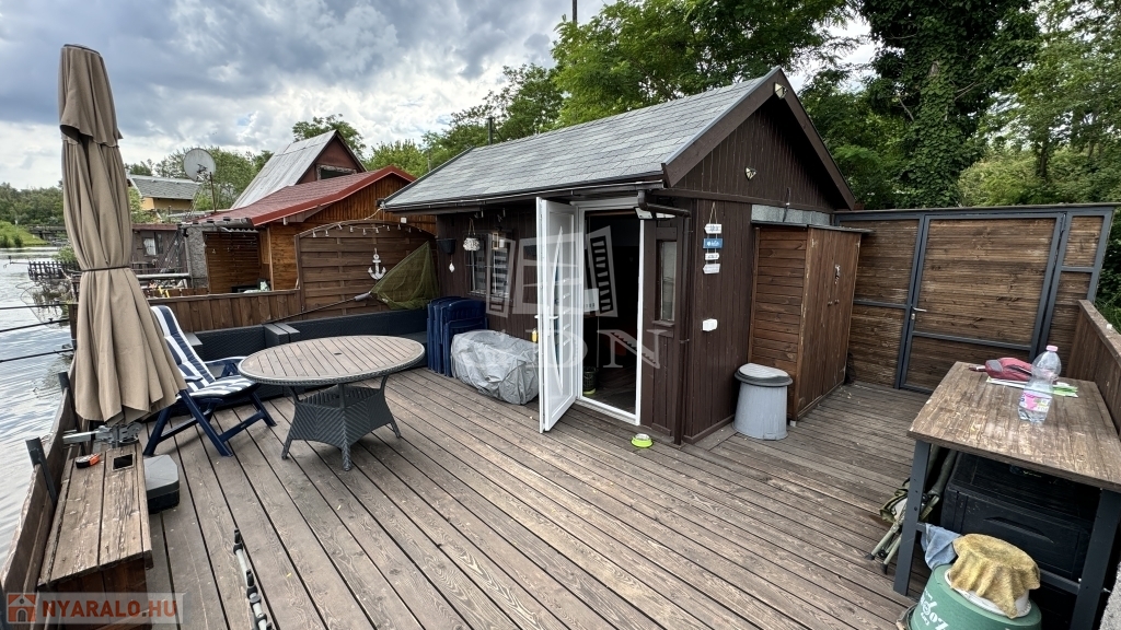 Környézetvédelmi csendes területen álló 42m2-es stég (7x6), amin egy 16m2-es (4x4) teljesen felújított faház található.