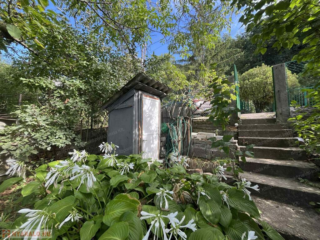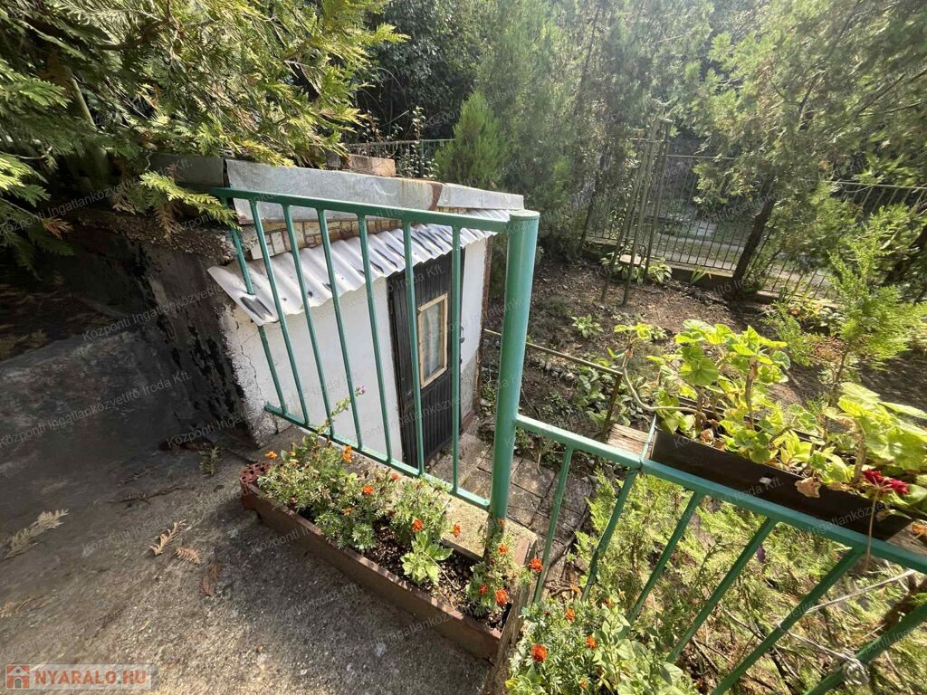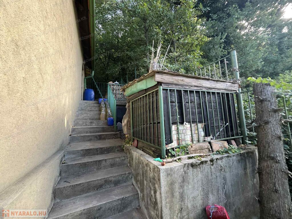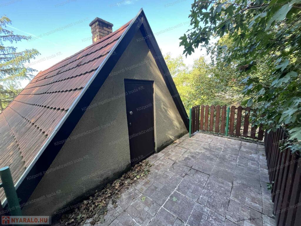 Az ingatlan 2 külön megközelíthető, egymással szembeni telekből áll, összesen 644 nm-es. A151 m2-es telken egy panel szerkezetű 2 szintes (24-24 m2) házikó áll, melynek alsó szintjén konyha és kamra található, ahonnan egy terasz nyílik, a felső szintjén előszoba, szoba és WC kapott helyet. A tetőtér tárolóként funkcionál, a ház mellett egy könnyűszerkezetes fa tároló található. Az ingatlan vezetékes vízzel, emésztővel ellátott, villanyórával felszerelt (20 amper). A kémény megépült, a fűtés jelenleg kályhával biztosított. Az épület 5 cm-es homlokzati szigetelést kapott.