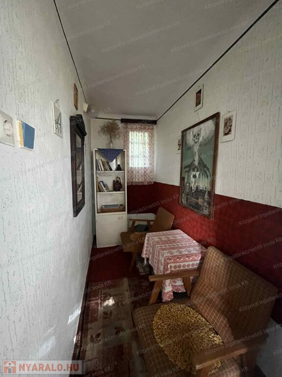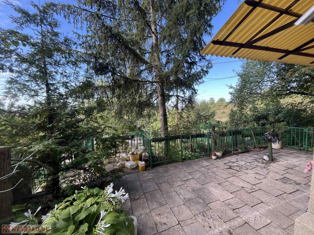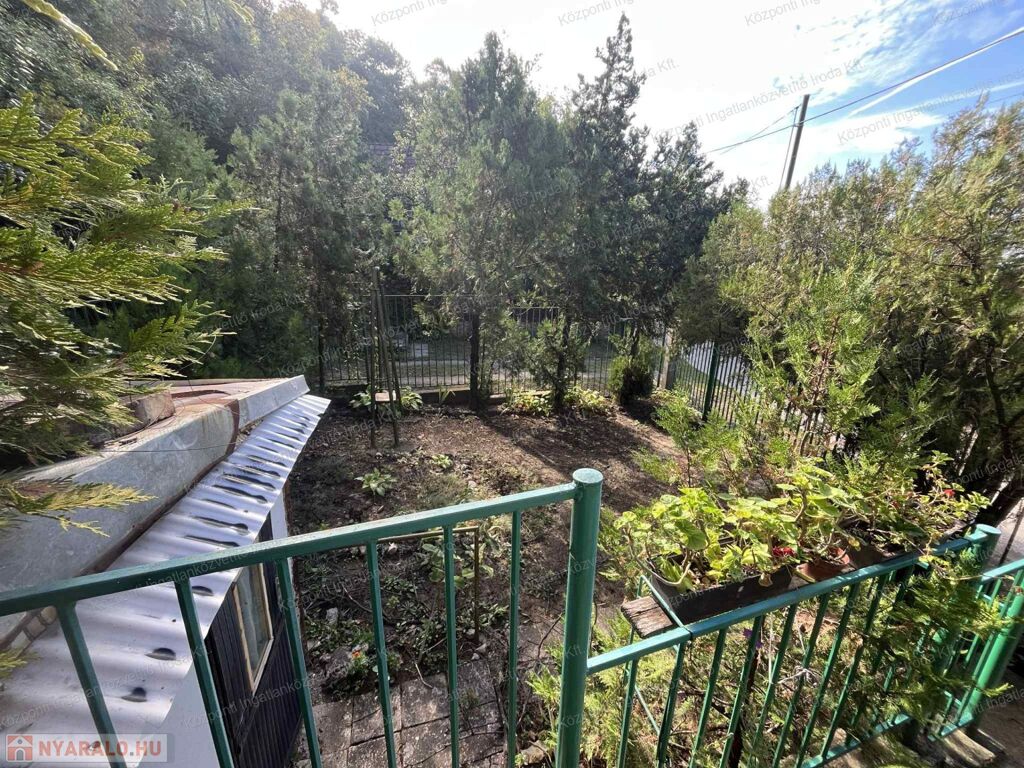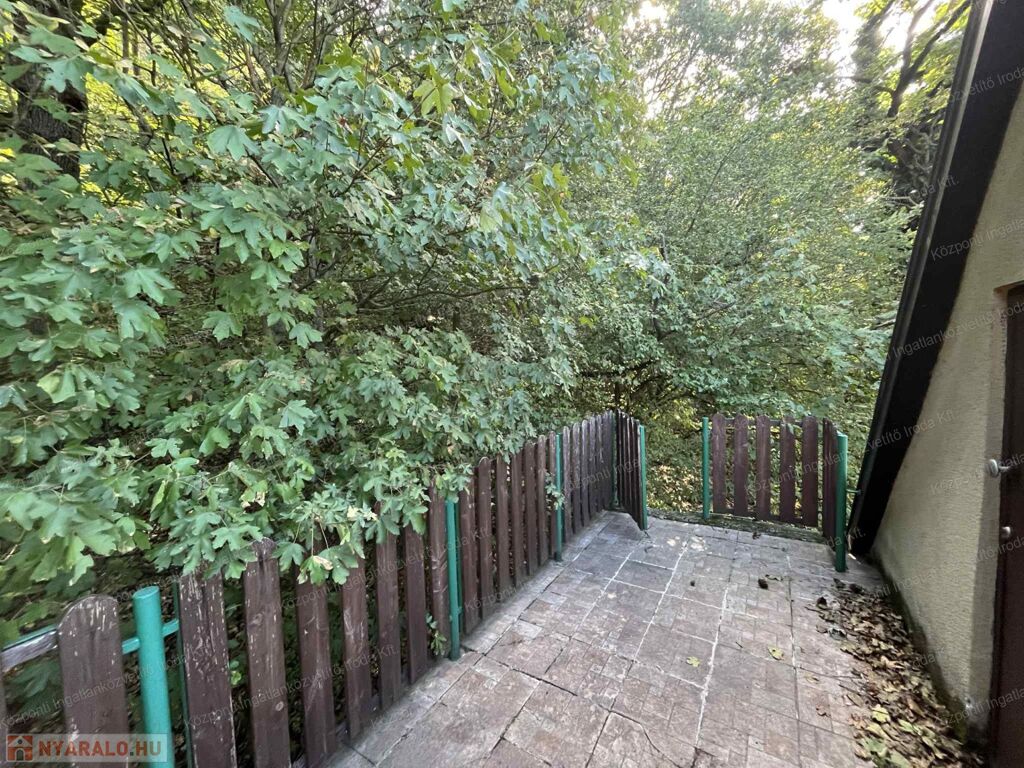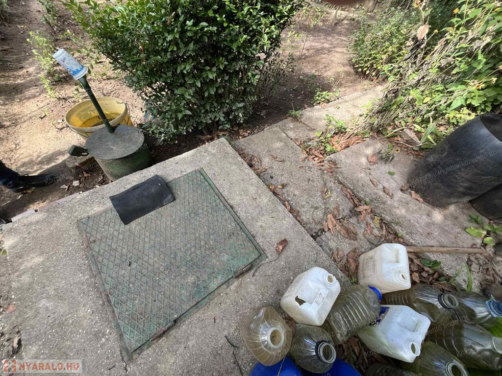 Az ingatlan 2 külön megközelíthető, egymással szembeni telekből áll, összesen 644 nm-es. A151 m2-es telken egy panel szerkezetű 2 szintes (24-24 m2) házikó áll, melynek alsó szintjén konyha és kamra található, ahonnan egy terasz nyílik, a felső szintjén előszoba, szoba és WC kapott helyet. A tetőtér tárolóként funkcionál, a ház mellett egy könnyűszerkezetes fa tároló található. Az ingatlan vezetékes vízzel, emésztővel ellátott, villanyórával felszerelt (20 amper). A kémény megépült, a fűtés jelenleg kályhával biztosított. Az épület 5 cm-es homlokzati szigetelést kapott.
