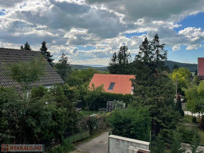 Az emeleti ablakból a Balaton víztükre is megcsillan a távolban.