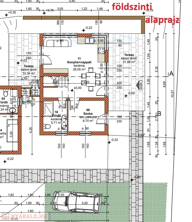 - falazat: Porotherm Klíma 30 cm vtg. égetett kerámia N+F téglafalazat (monolit vasbeton lemezfödém)