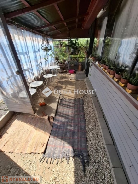 Tóalmás zártkerti részén eladó szigetelt - téliesített - jelenleg lakóházként használt könnyűszerkezetes házikó a berendezéssel együtt + garázzsal, szaletlivel és kerti tárolóval. A ház tetőtere 15 cm-es közetgyapot szigetelssel ellátott. A külső falak 10 cm-es közetgyapot szigetelést kaptak + panel elemeket. A födémen szintén 10 cm-es közetgyapot szigetelést találunk. Az épületbe a vezetékes víz és a villany is bevezetésre került! A beépített terasz fóliával van ellátva. A házban 5 éve a villanyhálózat (16 amperes és firelékkel ellátott) és a vízhálózat is kicserélésre került. Gyönyörű, parkosított dupla telekkel. Az ingatlan elosztása kiváló - egy tágas, beépített teraszba lépünk - mely nappaliként van jelenleg használva - innen is át tudunk lépni jobbra a garázsba. A garázs két oldalról is megközelíthető és elektromos garázsajtóval ellátott, ahogyan a kerti autóbejártó is. Az otthon melegét 3 db BVF elektromos panel adja, mely energiatakarékos és légszűrős berendezéssel is ellátott. Innen egyenesen tovább haladva érünk a konyhába, ahonnan jobbra egy nappali rész - melyből az egyik szoba nyílik és mellette külön bejárattal egy másik szoba, amivel szembe található a fürdő/mosdó helyiség! A konyhából tovább haladva jobbra egy tágas étkezőt találunk - mely akár szobává is alakítható. Ez alatt találjuk a pincét!Kertje körbe kerített, több gyümölcsfával és rengeteg virágzó növénnyel - de füves részt is találunk. Hátul pedig a kerti szerzszámoknak egy fa tárolót! A telken fúrt kút is megtalálható - de kerti csapot is találunk (3 db). Az ingatlan nem hitelezhető - készpénzes vevőt várunk!A központ autóval 5 percnyire taláható - de volán busz megálló is van kb. 600 méterre a háztól.