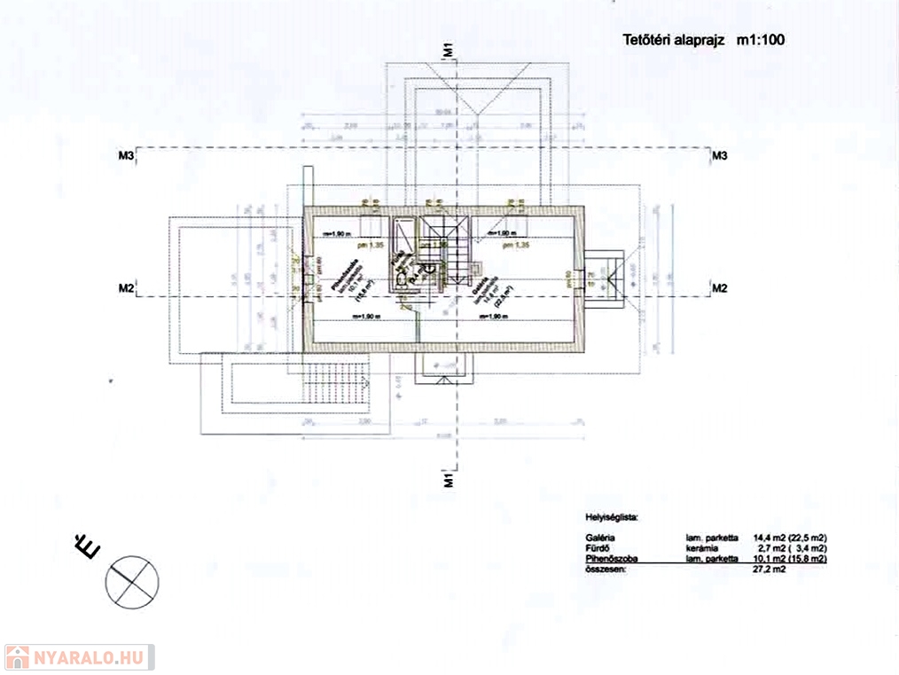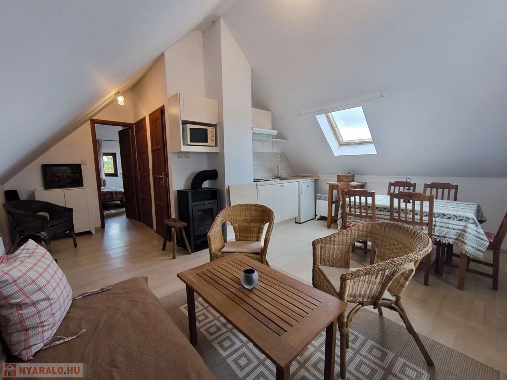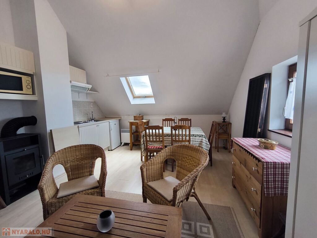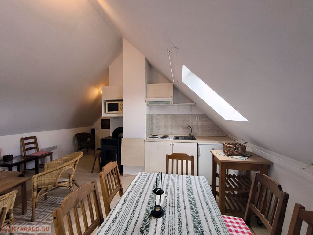 Tetőtér: galériás nappali-konyha, hálószoba, fürdő.