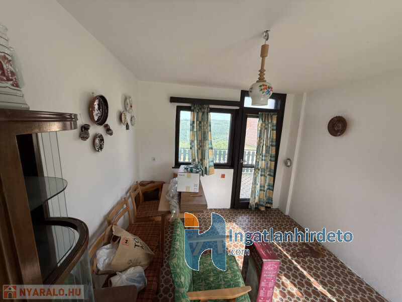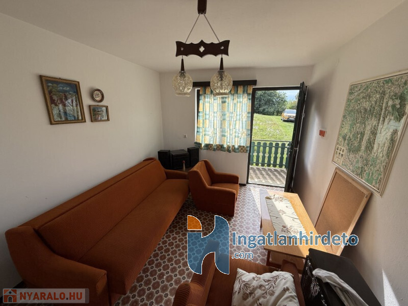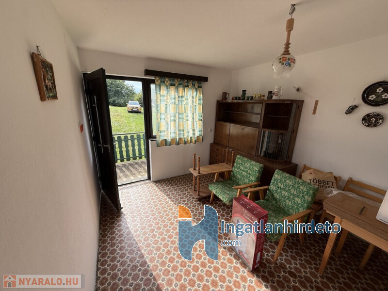 Elhelyezkedése: Egyéb Emeleti elhelyezkedés: Földszinten Tájolása: Keleti tájolású Állapota: Jó Komfort besorolása: Fél komfortos Építési éve: 1978 Alapterülete: 60 m2 Telekterülete: 2 917 m2 Szobák száma: 2szoba Közművek: Víz, Villany Vízellátás: Vezetékes víz Áramellátás: 230V Fűtés módja: Gáz, Fa Fűtés típusa: Konvektoros Homlokzat állapot: Jó Építési mód: Tégla Tető formája: Magas Tető anyaga: Cserép Parkolási lehetőség: Telken Kilátás: Hegyi panoráma, Városi panoráma Napelem: Nincs Jellemzői: Alacsony rezsi, Udvari terasz, Kert Energetikai besorolás: Nincs adat Egyéb jellemzők: Terasz