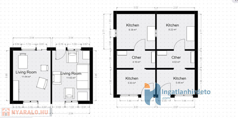 A földhivatali nyilvántartás szerint gazdasági épület, a valóságban azonban egy két részből álló, egybenyitható nyaraló.