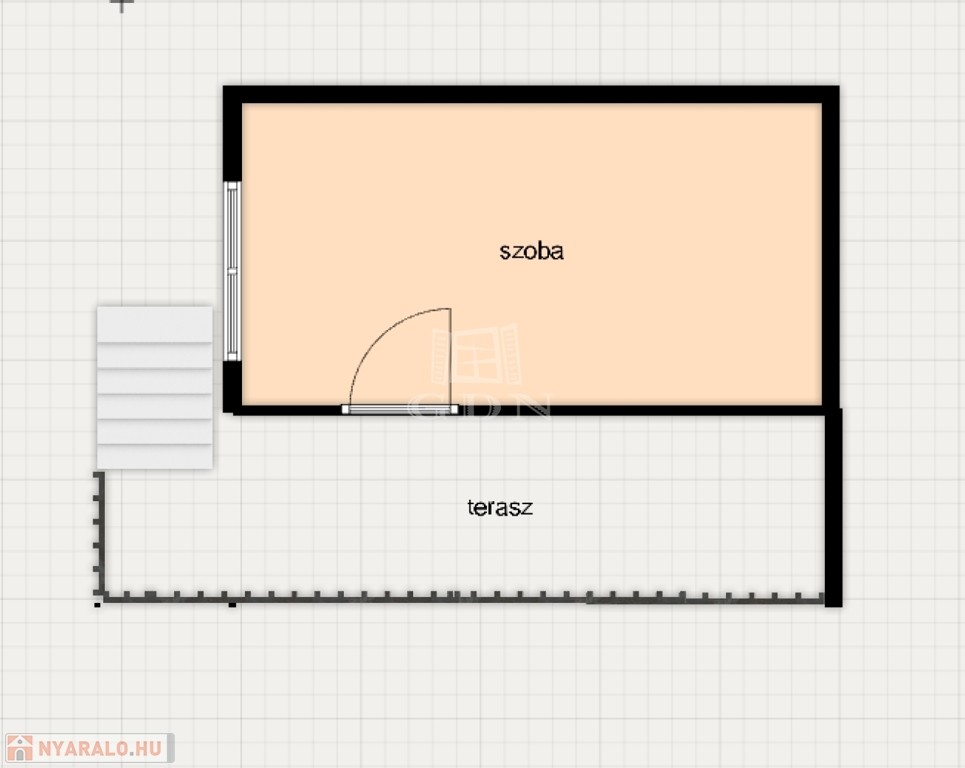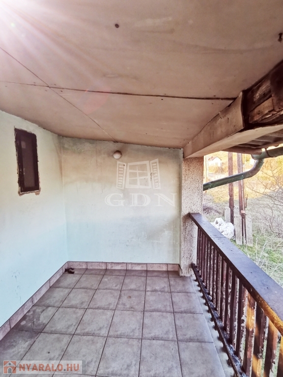 Az ingatlan alsó szintje egy nagyobb és egy kisebb helyiségből áll. A kisebb helyiség konyhaként funkcionál, a nagyobb tárolóként. A felső szinten egy szoba és egy fedett terasz található, amely kiváló étkezésre, pihenésre, kikapcsolódásra egyaránt.