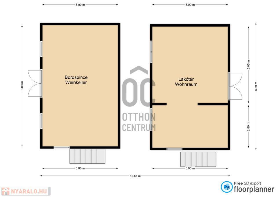 -Az alsó szinten téglaboltíves pince, az emeleten 2 tágas helyiség van.