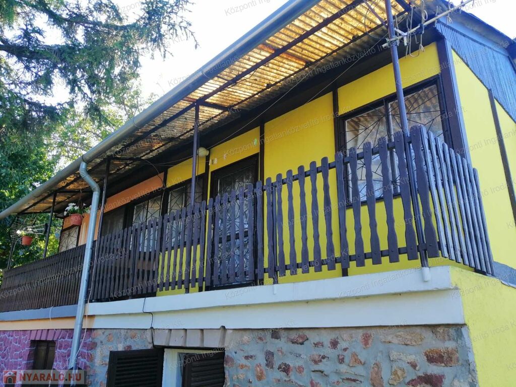 Az átlagos állapotú ház 2 szintes, összesen 70 m2-es, 279 m2-es saroktelken helyezkedik el, ami egy mellékutcában található. Az alsó szint kőből épült, a felső szint könnyűszerkezetes, így könnyen alakítható. Jelenlegi kialakítása 3 szoba, konyha, 1 fürdőszoba, 2 WC, tároló. A nagy szobából egy terasz nyílik, ahonnan rálátás nyílik a Balatonra.