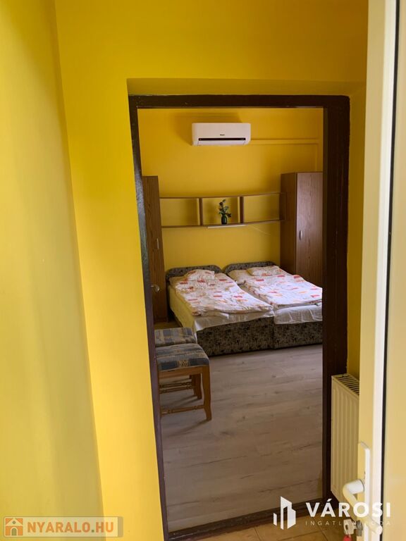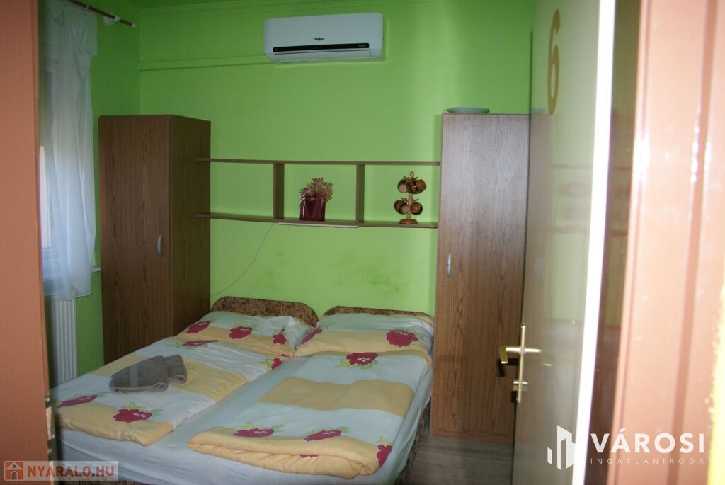Hajdúszoboszló frekventált, zöldövezeti részében, apartmanház kiadó 3+2 szobával, elsősorban hosszabb távra. A családi apartman főépülete 2021-ben teljes felújításon esett át: új nyílászárók, 200X180-as ágyak kerültek elhelyezésre új matraccal, valamint új laminált padló és új szaniterek kerültek beépítésre a 3 különálló szobába. Mindegyik szobához önálló fürdőszoba, valamint egy közös nappali teljesen felszerelt konyhával tartozik. Az apartman mindegyik szobája légkondicionált, wifivel, sík képernyős TV-vel és hűtőszekrénnyel ellátott. A szobák kellemes méretűek, 2+1 fő elhelyezése lehetséges, a szobák mérete 18 m2. Az apartman földszinti, és akadálymentesített.