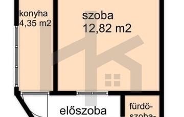 -helyiségek: szoba, konyha, előszoba és fürdőszoba wc-vel