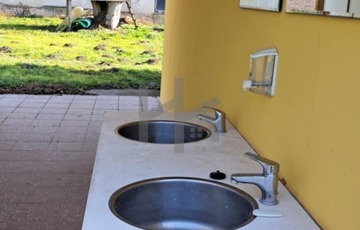 Kempinghez tartozik egy családi ház is, melyben 3 szoba, nappali, fürdőszoba, wc, tároló található. Garázs is rendelkezésre áll.