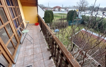 Az emelet további három szobát kínál, valamint előtér/közlekedőt, konyhát, kamrát, fürdőszobát, külön WC-t és egy 7 m²-es erkélyt. A fűtés gázkonvektorokkal megoldott.