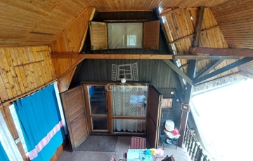 Az utcafront felé, előkertes kialakítással található a kb. 39 m²-es faház, amely szobából, hálóból, konyhafülkéből, fürdőszobából és közlekedőből áll. A főépületet és a faházat egy 18 m²-es fedett terasz köti össze, ami kiváló közösségi térként szolgálhat – akár családi, akár baráti összejövetelekhez.