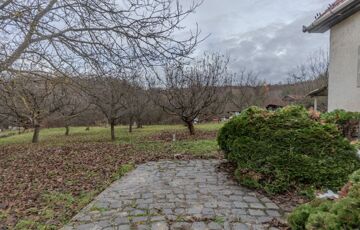 Az ingatlan egy 1030 m²-es, gondozott telken helyezkedik el, amelyen több termő gyümölcsfa, diófa, fügebokor biztosít kellemes, természetközeli környezetet.