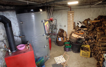 -központi fűtésrendszer radiátorokkal, vegyestüzelésű kazánnal, 1000 literes puffertartállyal