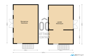 -Az alsó szinten téglaboltíves pince, az emeleten 2 tágas helyiség van.