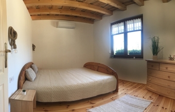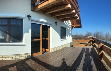 Győrújbarát festői szépségű, Pannonhalmi Apátságra tekintő csendes részén, nyugodt környezetben, 2206 m2-es telken lévő, amerikai konyha – étkező – nappali + 3 hálószobás, 95 m2 hasznos alapterületű, kiváló állapotú, KLIMATIZÁLT családi ház/hétvégi ház/nyaraló/zártkert, 22,26 m2-es TERASSZAL, 6,18 m2-es ERKÉLLYEL, 20,53 m2-es kétállásos fedett gépkocsi beállóval és PÁRATLAN, PANORÁMÁS kilátással eladó.