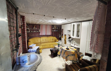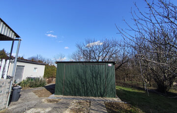 A telken található továbbá egy tágas, 15 m²-es melléképület valamint egy 24 m²-es mobil garázs.