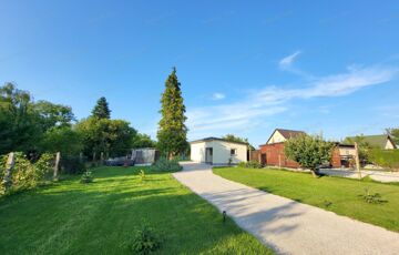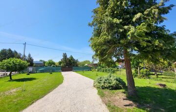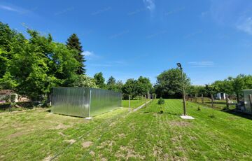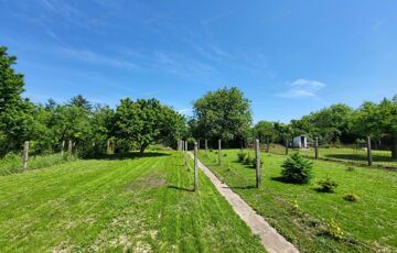 A telek teljesen körbekerített, szépen gondozott, amelyen jól termő gyümölcsfák vannak, valamint örökzöldek. Veteményezési és konyhakert kialakítására is van lehetőség. Parkolás az utcán és telken belül lehetséges.
