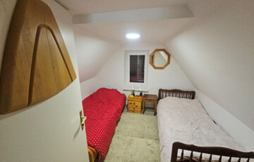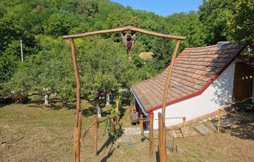 Kaposkeresztúr és Baté között a hegyen kínáljuk megvételre ezt a zártkerti házat csodálatos természeti környezetben. Kétszintes, nem nagy, de minden megvan benne, ami szükséges, akár állandó lakhatásra is alkalmas. Lent a fedett terasz köti össze a kertet a belső térrel, innen mehetünk be a házba. A konyhába lépünk, ahonnan jobbra a pincébe juthatunk, balra az egyik szobába. Itt, a szoba sarkába állították be a zuhanykabint és egy mosdót. A másik szoba a padlástér beépítésével fent lett kialakítva, külső bejárattal. Van két tároló rész is, egyik fent a szoba előtti előtérben, a másik lent, a teraszról nyílik. A házat ízlésesen és minőségi módon felújították, kicserélték az elektromos hálózatot és a nyílászárókat, az új bejárati ajtó tölgyfából készült. A konyha és a „fürdő” minden igényt kielégít. Víz fúrt kútból áll rendelkezésre, onnan van bevezetve az épületbe, illetve a kerti zuhanyzóba. A jelenlegi tulajdonosok környezetbarát komposzt WC-t használnak. Fűteni többféle módon lehet, a fenti szobában villanyradiátorral, lent pedig van egy kályha, valamint hűtő-fűtő klíma berendezés. A lakóterület 32 m2, ehhez jönnek még a tárolók, a terasz és a pince. A telek 3900 m2-es, alsó része nagyjából sík, feljebb teraszos. A ház közelében létrehoztak még egy fedett teret egy kis kemencével, bográcsozó hellyel. Mind a ház, mind a környezete szépen gondozott, ápolt, nagyon jó hangulatú. Alkalmas szálláshelynek, hétvégi háznak, de akár ki is lehet költözni a világ zaja elöl. Autóval jól megközelíthető, de buszmegálló is 5-10 perc sétára van. Minden bútor és felszerelés marad, az ár tartalmazza ezeket!